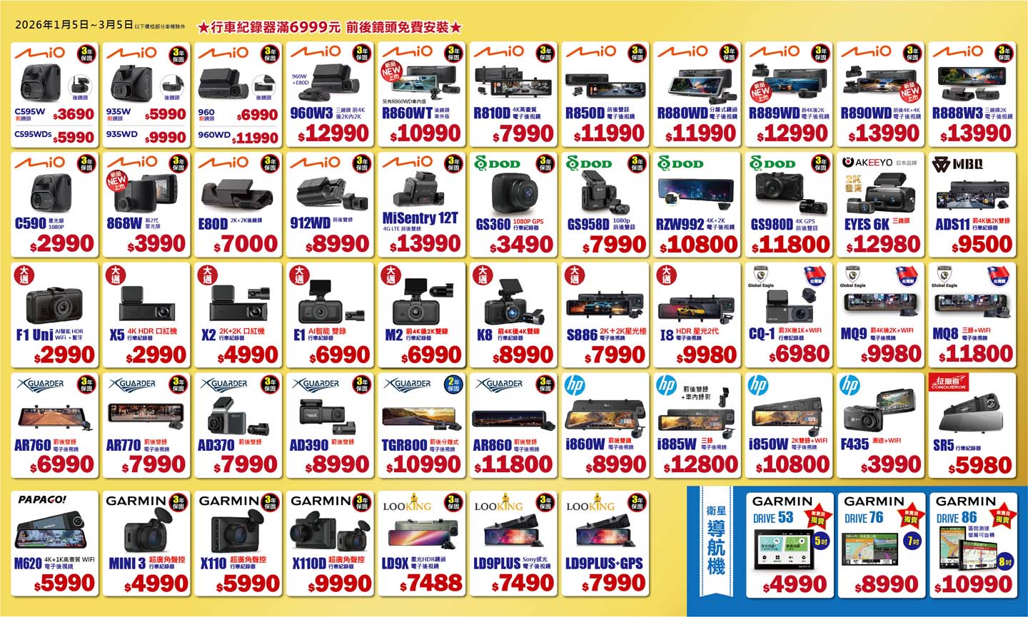 買前後行車紀錄器,玩骰子現折最高1200元。