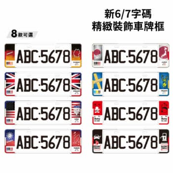 新6/7字碼精緻裝飾車牌框 | 國旗車牌框 德國 英國 美國 台灣 日本