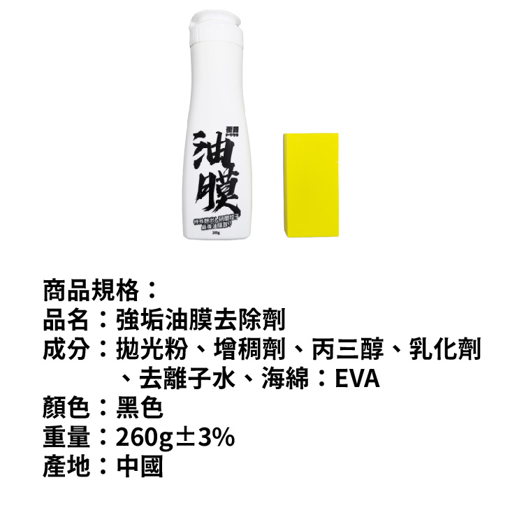 - 成分:拋光粉、增稠劑、丙三醇、乳化劑、去離子水、海綿:EVA