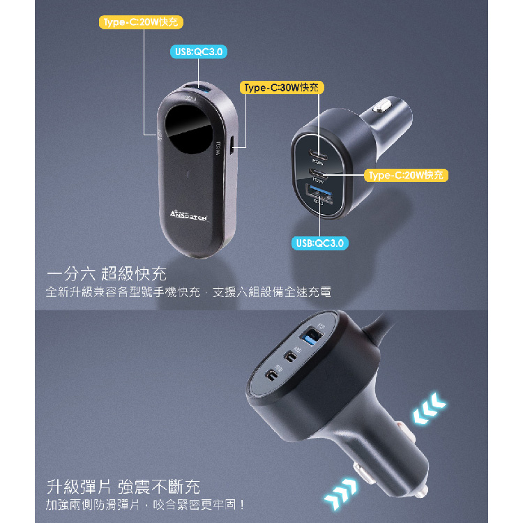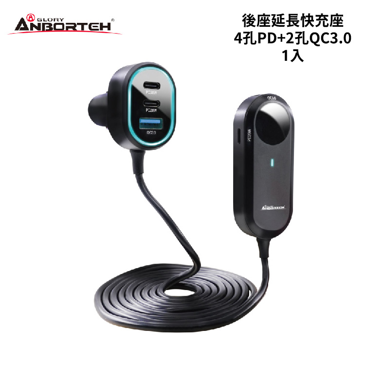 安伯特 後座延長快充座 4孔PD+2孔QC3.0 1入|車充