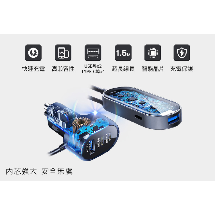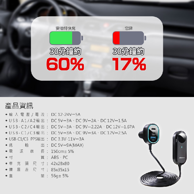- 品名:安伯特 後座延長快充座 4孔PD+2孔QC3.0