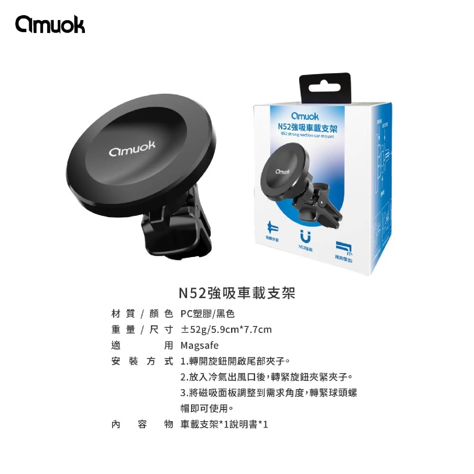 amuok N52強吸車載支架-黑|手機支架 磁吸手機架
