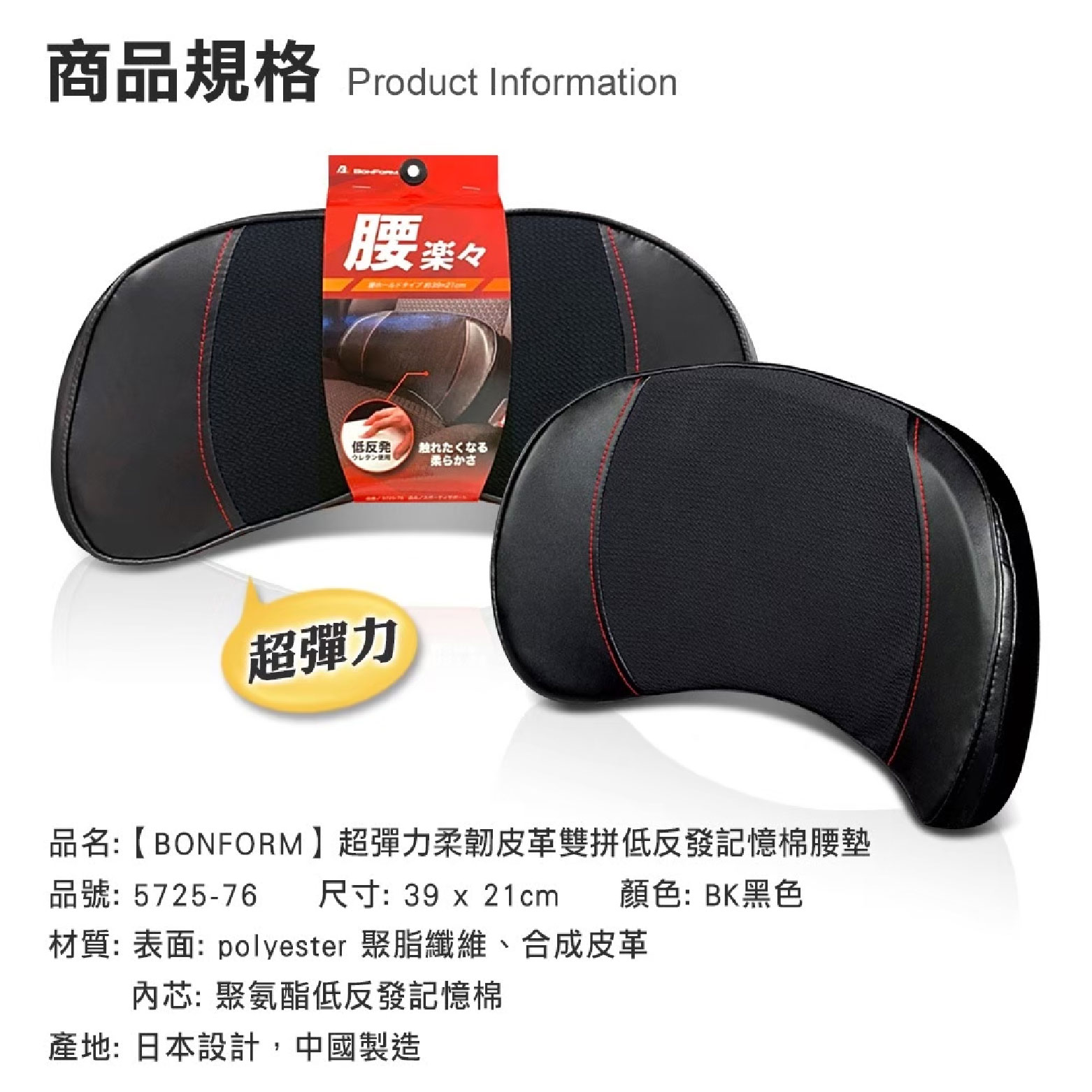日本 BONFORM 超彈力柔韌皮革雙拼低反發記憶棉腰墊