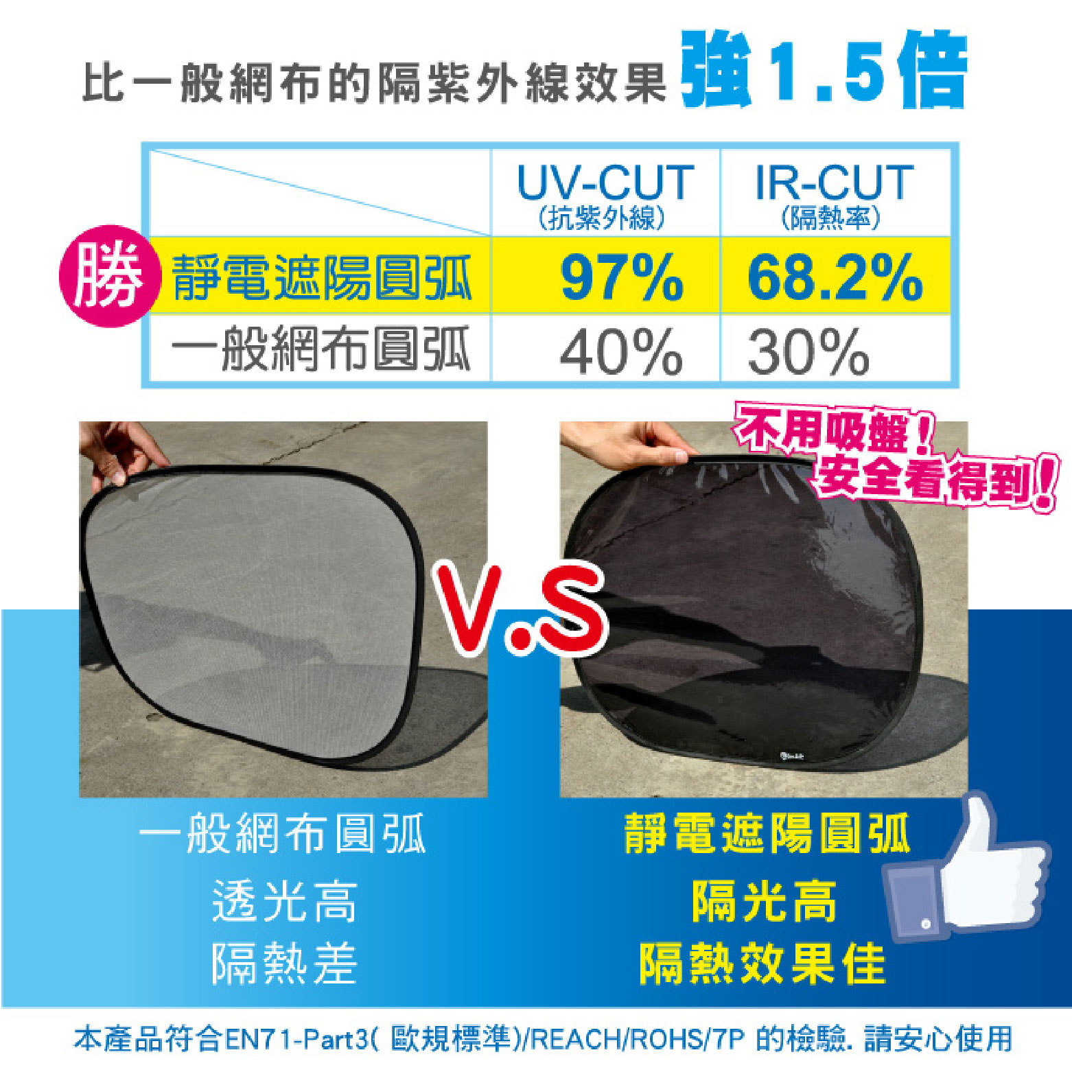 - 品名:魔術靜電遮陽圓弧