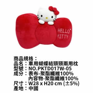 HELLO KITTY經典 車用蝴蝶結頭頸兩用枕