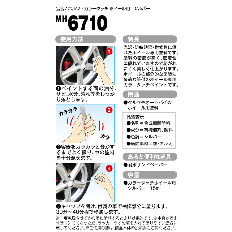 - 光澤、防鏽效果耐候性優異的鋁合金輪圈專用塗料。