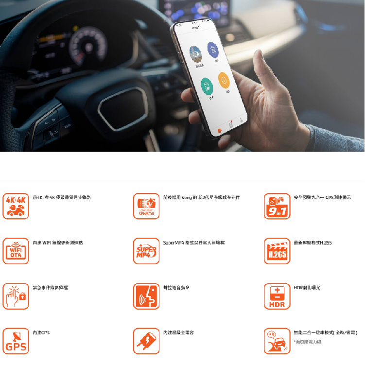 • -前鏡頭:4K 2160P/30fps、2K 1440P/30fps HDR