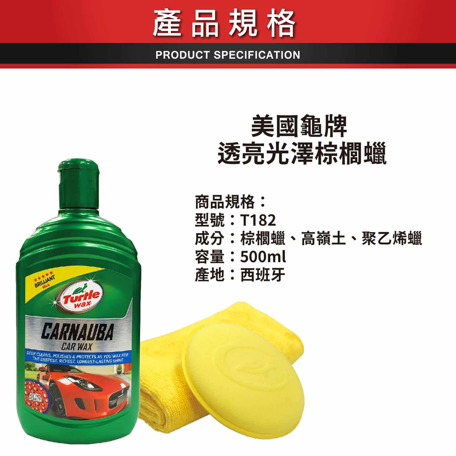 Turtle wax 龜牌透亮光澤棕櫚乳蠟 T182 (500ml)|內附上蠟綿 推蠟布