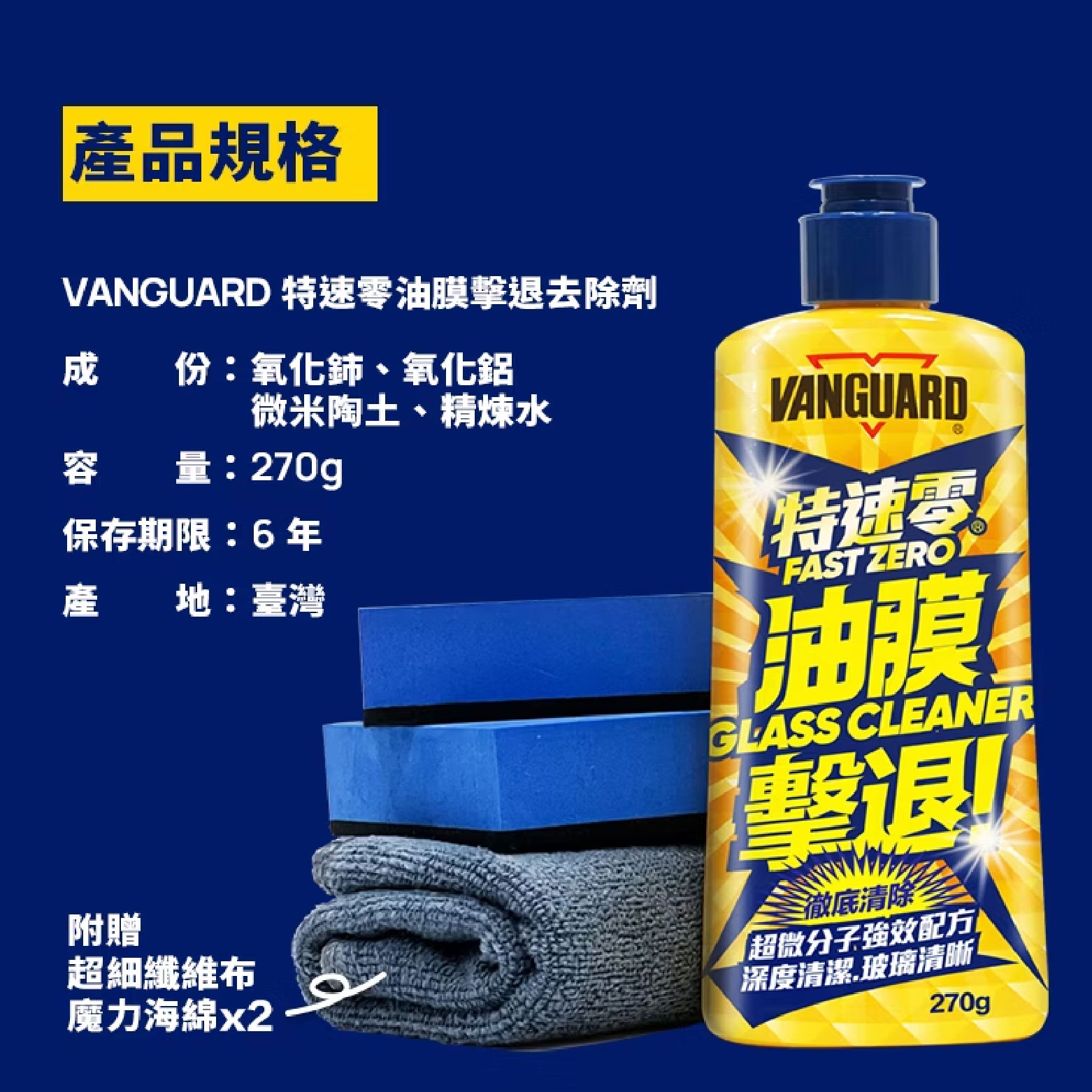 VANGUARD 特速零油膜擊退去除劑 270g|附海綿及纖維布